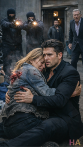 His face, which a second earlier had been distant and controlled, was now naked with shock. Rain slicked his skin. Her blood streaked his collar and the front of his white shirt. His hands came up under her back, searching desperately for wounds, and when they found them his expression changed.