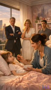 On the tray beside her bed sat lunch number fourteen: organic tomato bisque finished with basil oil, half a grilled artisan cheese sandwich cut into neat triangles, hand-peeled apple slices brushed with lemon so they would not brown, and a vanilla nutritional shake that had been flown in from Los Angeles because some specialist had sworn children responded better to “familiar dessert notes.”