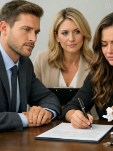It streaked the tall windows of the law office and blurred the city into silver lines, so the world outside looked as if it were melting. Inside, everything was too sharp. The brass lamp on the attorney’s desk. The neat stack of divorce papers. The expensive watch on Ethan Cole’s wrist as he stood across from her without touching her, without even pretending this was breaking him too.