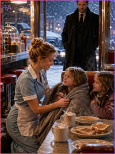 It ended with a father no longer broken, two little girls no longer running, and a waitress who once had nothing building a family out of one brave decision made in the middle of a storm.